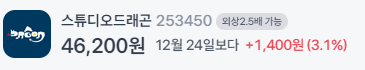 - 사업 개요: 드라마 및 영화 제작을 전문으로 하며, 배우 이정재가 보유한 지분 구조로 인해 '오징어게임' 관련주로 주목받고 있습니다.