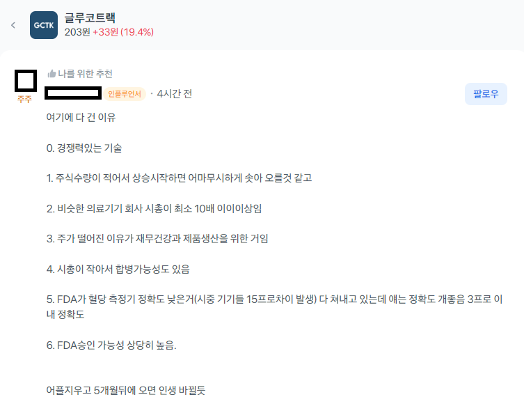 글루코트랙은 기술적 경쟁력을 갖춘 기업이나, 초기 단계 특성상 높은 변동성과 리스크를 동반합니다.