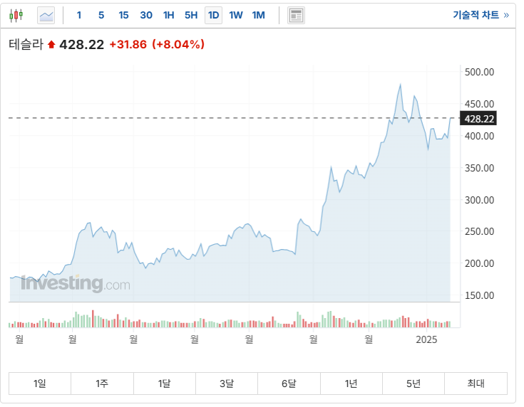 테슬라의 자율주행 기술과 AI 분야에 대한 투자 역시 투자자들에게 긍정적인 평가를 받고 있습니다. 모건스탠리가 테슬라의 기술 혁신 가능성을 반영해 목표 주가를 상향 조정하며 ‘매수’ 의견을 유지한 것은, 이 기술이 단순히 미래 성장 가능성을 넘어서, 현재의 기업 가치를 재평가하게 만들었다는 의미로 해석할 수 있습니다.
