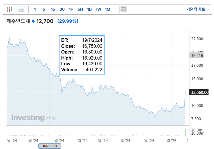 최근 제주반도체의 주가가 급등하며 시장의 주목을 받고 있습니다. 2024년 1월 20일 기준, 제주반도체의 주가는 12,700원을 기록하며 1월 17일 대비 2,930원(29.9%) 상승했습니다. 이러한 급등의 배경에는 반도체 업황 회복, 모바일 메모리 시장 확대, 그리고 제주반도체의 사업 전략 강화가 주요 요인으로 꼽힙니다.