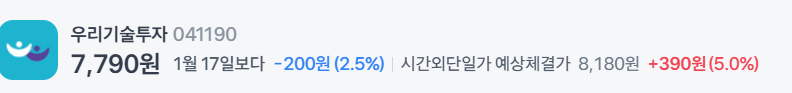 | 2025년 1월 20일 | 7,790원 | -200원 | -2.5% |