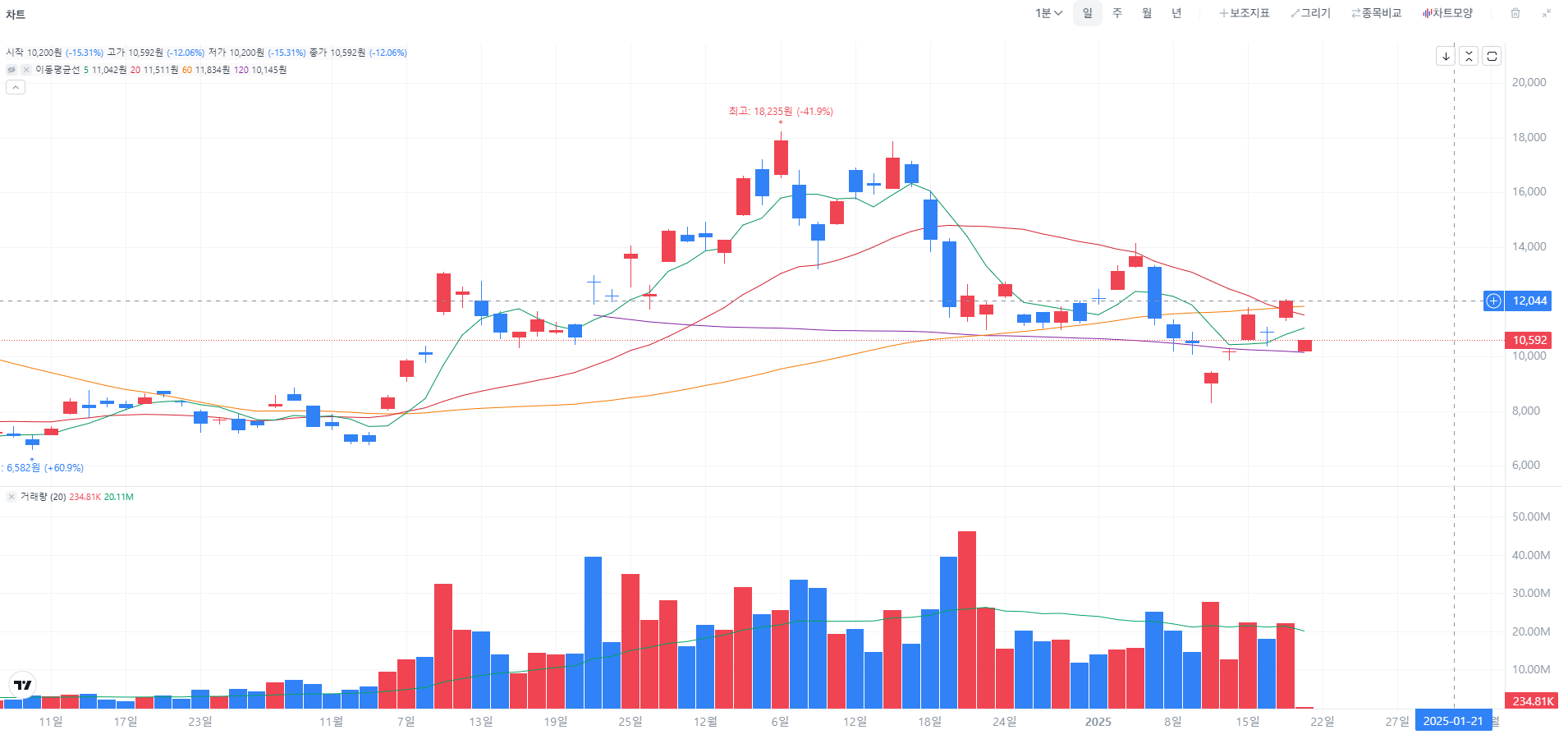 - 전략: 현재 가격이 너무 빠르게 상승하여 추가 매수보다는 조정을 기다리는 전략이 유리합니다.